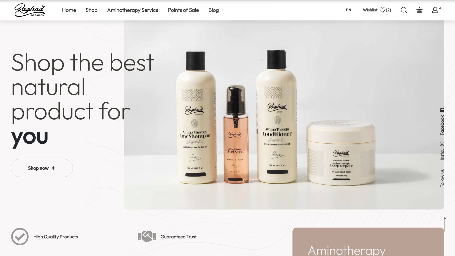 A complete online store for an organic beauty brand. Features easy shopping, subscriptions, and secure local payments.